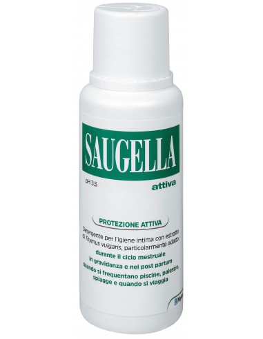Saugella Attiva è il detergente intimo indicato per un'igiene profonda. La formula del detergente intimo Saugella Attiva contiene estratto di Timo, un antibatterico naturale ed è arricchita con Salvia Officinalis per lenire gli stati infiammatori e irritativi. Inoltre Saugella Attiva non altera il pH ottimale dell'area genitale e non crea squilibri delle naturali difese. Per questo Saugella Attiva è il detergente intimo indicato durante e dopo il ciclo mestruale, per un uso costante quando si frequentano luoghi pubblici come palestre e scuole, nei bambini in età da pannolino ed in caso di infiammazioni e piccole perdite.