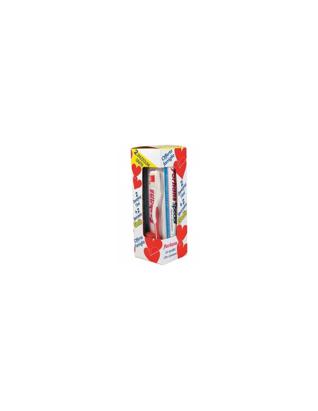 L'offerta famiglia Forhans è un pacchetto risparmio che include 2 dentifrici Forhans Special e 2 spazzolini.
