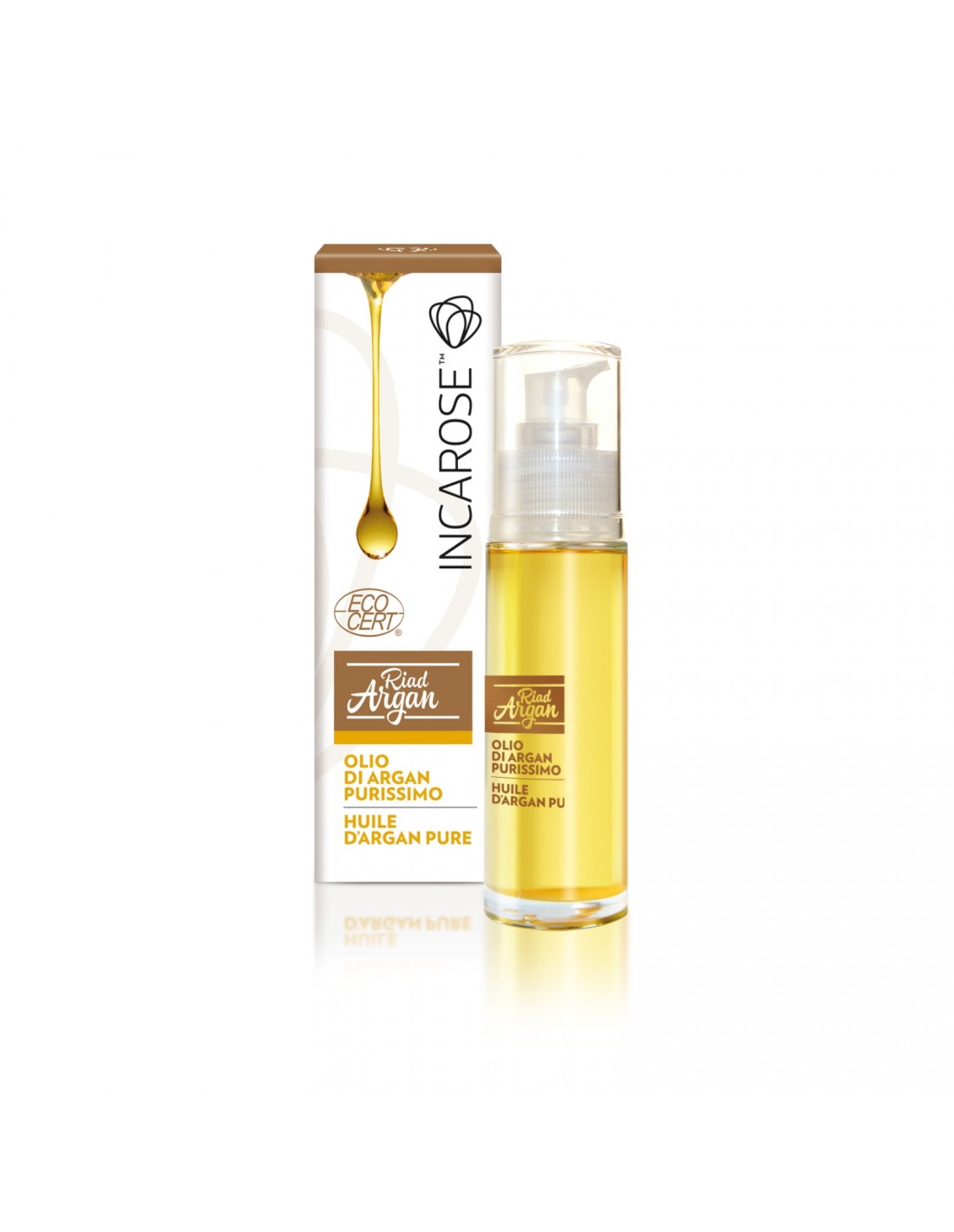 L'Olio Puro Riad Argan Incarose dona alla pelle del viso e del corpo un' idratazione e una protezione completa