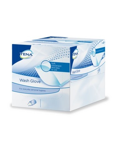 Il Tena Wash Glove è realizzato con un materiale lavorato, morbido e spesso e combina la delicatezza di un panno con la praticità di un guanto monouso per prendersi cura in modo efficace delle pelli mature e delicate. Utilizzata principalmente per la cura frequente della cute della zona perineale durante i cambi di ausili assorbenti. I guanti monouso Tena offrono una buona presa e maneggevolezza, specifica per eseguire il bagno a letto. Lo speciale rivestimento interno in plastica e privo di lattice garantisce un'igiene extra. I guanti Tena Wash hanno una manopola morbida e resistente, per detergere in modo semplice e veloce la pelle delicata del tuo caro.