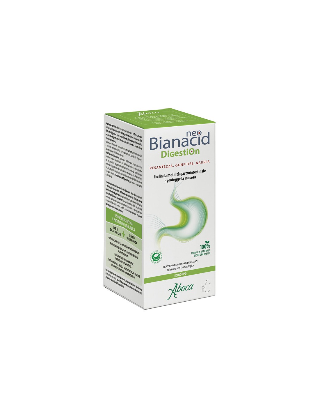 Aboca Neobianacid Digestion Sciroppo studiato per il trattamento delle problematiche connesse alle difficoltà digestive. Dispositivo Medico CE.