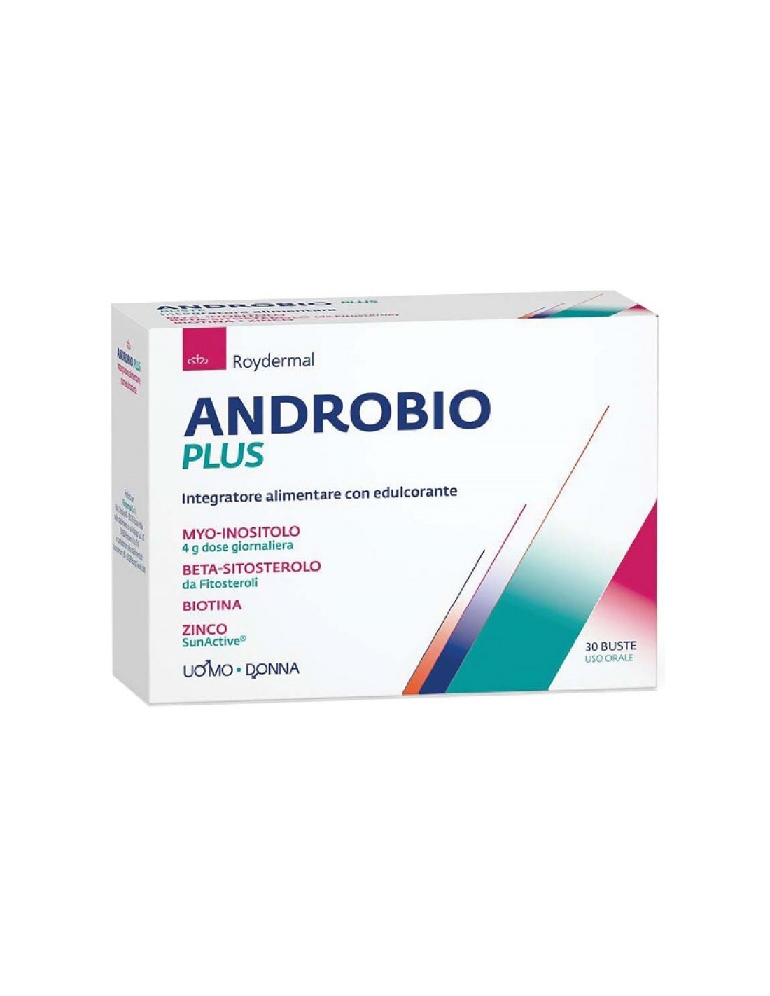 Myo-inositolo, fitosteroli (di cui 70% beta-sitosterolo); agente antiagglomerante: biossido di silicio; acidificante: acido citrico; SunActive Zn (ossido di zinco; emulsionanti: esteri poligliceridi degli acidi grassi, lecitina di soia; maltodestrina), aroma; colorante: beta carotene; edulcorante: sucralosio; D-biotina (biotina).