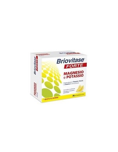 Briovitase Forte è un integratore alimentare a base di magnesio, potassio e vitamina C. Bustine gusto Limone.