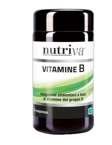 L'integratore alimentare Nutriva è composto con vitamine del gruppo B che presiedono alla formazione di energia per l’organismo. Le Vitamine B sono indicate nei periodi di stress psicofisico o nei casi di ridotto apporto con la dieta, di affaticamento generale e come epato-protettrici. Un apporto di vitamine del complesso B è notoriamente utile per l’integrità del sistema nervoso. L’integrazione di vitamine B è consigliata in persone sottoposte a terapia antibiotica. In partcolare le vitamine B6, B12 e l’acido folico favoriscono la diminuzione dei livelli di omocisteina considerata il nuovo colesterolo nel sangue. Il prodotto è privo di zuccheri, sale, amido, latte e derivati, glutine, soia, coloranti ed aromi artificiali, OGM. Adatto a vegetariani e vegani.