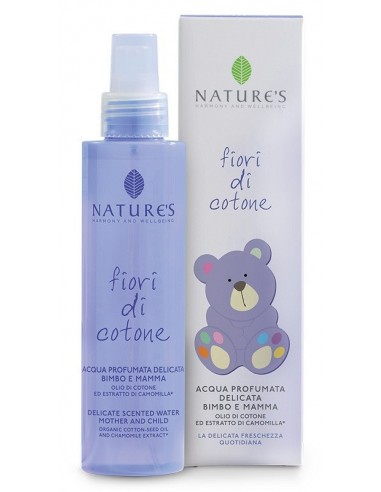 L' Acqua Profumata Nature's con olio di cotone ed estratti di camomilla è perfetta per la mamma e per il bambino
