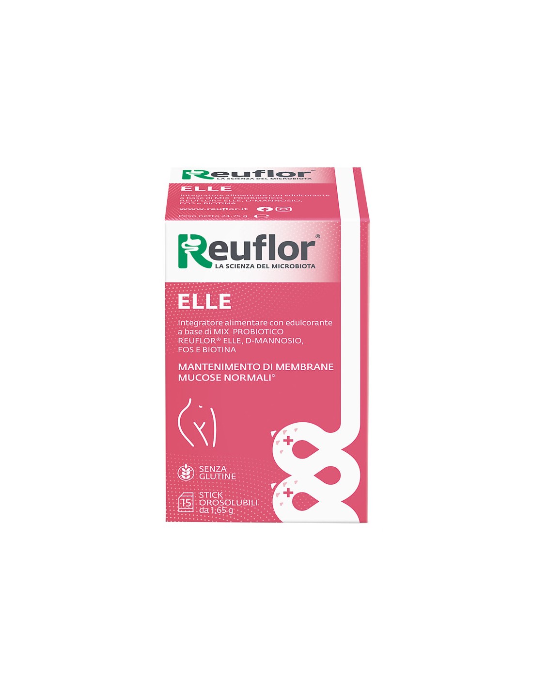 Reuflor ELLE è un integratore alimentare a base di una miscela esclusiva di probiotici (L.crispatus SP28, L.gasseri LG050, L.rhamnosus CA15), D-mannosio, Frutto-oligosaccaridi (FOS) e Biotina.