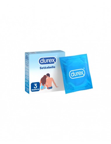 Preservativi Durex Settebello Classico, confezione contenente 3 profilattici monouso.