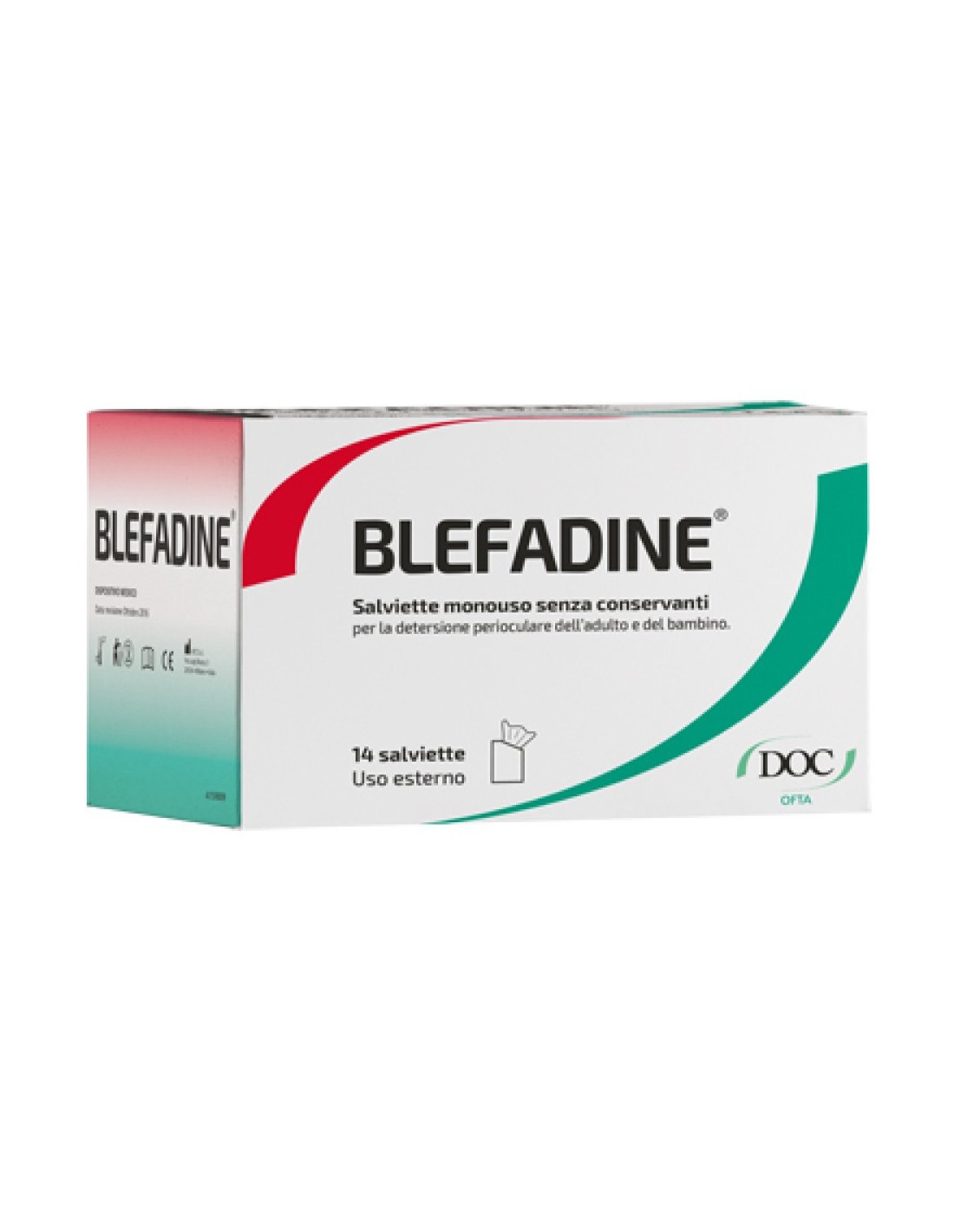 Salvietta monouso di cotone naturale imbevuta di una soluzione a base di Hy-Ter (Acido ialuronico più Tea tree oil) e di aloe in grado di svolgere un'attività detergente, emolliente, lenitiva e decongestionante. Blefadine è formulato con antinfiammatori ed antisettici naturali e consente di ottenere un rapido sollievo dai sintomi. Una corretta detersione oculare e perioculare è importante in tutte le situazioni di infiammazione ed infezione in atto o potenziale. Blefadine, grazie al sistema Hy-Ter, risulta particolarmente indicato per la detersione delle palpebre e delle ciglia e come coadiuvante dell'antisettico nel pre e post chirurgico e nel trattamento di congiuntiviti batteriche ed allergiche e di blefarocongiuntiviti.