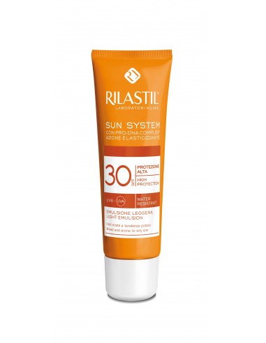 La Crema con SPF 30 della linea Rilastil Sun System è studiata appositamente per offrire una protezione alta alla pelle del viso di chi ha un fototipo chiaro e di chi ha una pelle sensibile. Il fattore di protezione SPF 30 garantisce una schermatura ad ampio spettro dalle radiazioni UVB-UVA ed aiuta a prevenire l'insorgenza di scottature ed eritemi solari. La Crema solare Rilastil idrata, lenisce e previene i rossori donando alla pelle del viso un'abbronzatura dorata e uniforme. La formulazione unica della Crema Rilastil Sun System contiene Pro-Dna Complex, un complesso brevettato che aiuta a proteggere la bellezza della pelle contro l'invecchiamento cellulare precoce. Dermatologicamente microbiologicamente testata. Non contiene parabeni. Water-resistant.